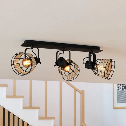 Deckenspot Anwick 1 mit Rattandekor, dreiflammig
