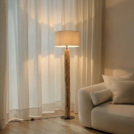 Lucande Stehleuchte Jorvan, creme, Eukalyptus, Leinen