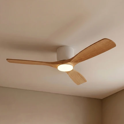 LED-Deckenventilator Stem, Holz hell, DC leise, Ø 137 cm CCT