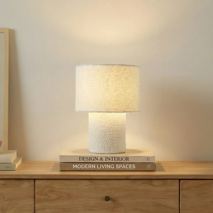 Tischleuchte Jone mit einem Leuchtenschirm und Leuchtenfuß aus Textil